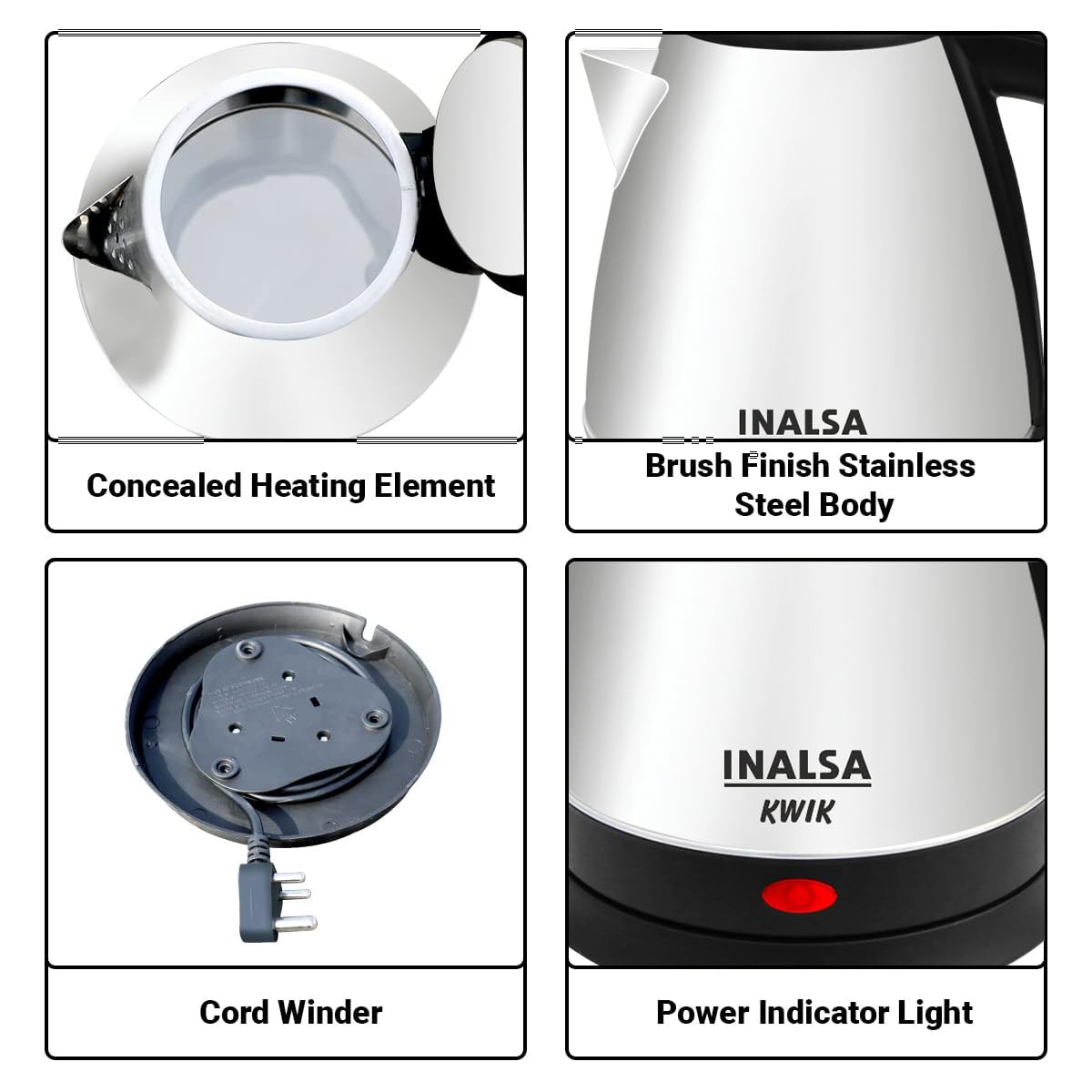 INALSA Electric Kettle 1.5 Liter with Stainless Steel Body