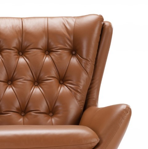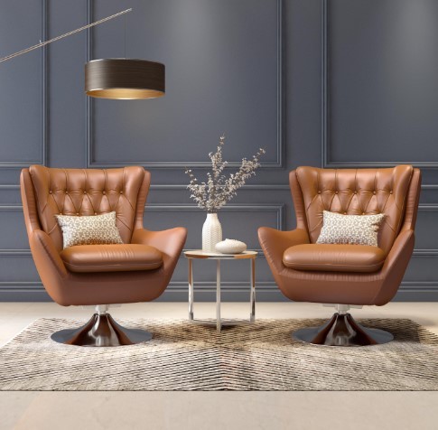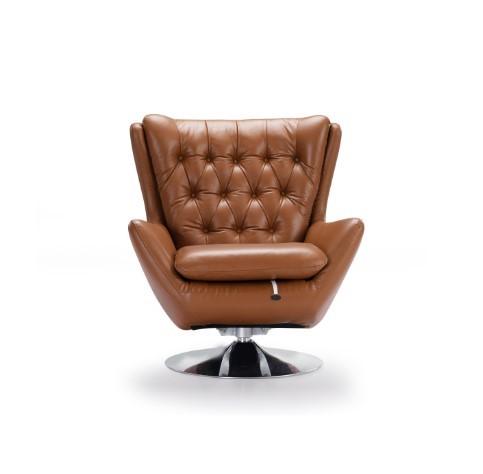 With supple genuine leather covering every curve, this chair has a regal personality refreshed with a contemporary twist of revolving silhouette. The cradling, swooping flow of the wingback, tailored with classic button-tufting invites you to indulge in the luxurious comfort.