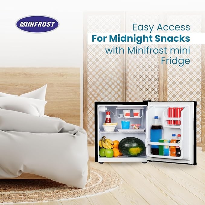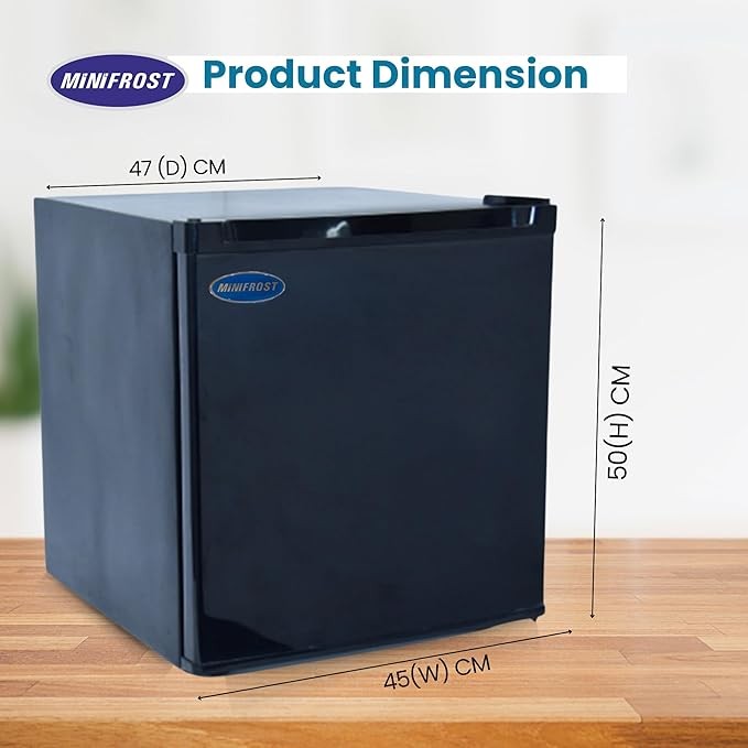 Minifrost 50 L Single Door Mini Fridge Ideal for Home, Office, Dorm Room | Personal Minibar | Compact Size | Black (50 Liters)