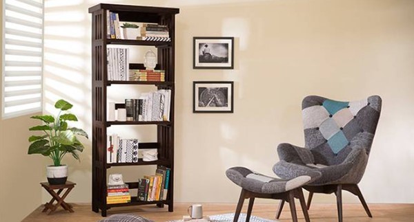 Solid Wood Bookshelf in Mahogany Finish