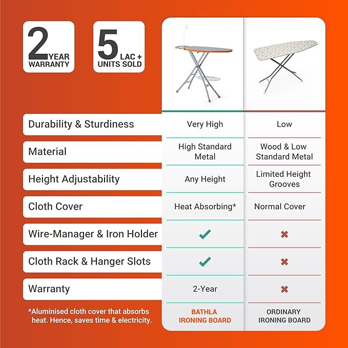 The aluminized ironing surface utilizes the latest in heat-transfer material technology to reflect heat and save up to 40% electricity and time!